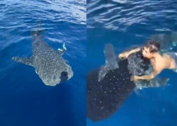 Video: Pescadores interactúan con tiburón ballena en costas Manzanillo