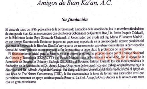 Detrás de todo, la asociación civil Amigos de Sian Ka’an, fundada en 1986 donde, entre sus asociados honorarios se encuentra el ex gobernador Pedro Joaquín Coldwell, Miguel Alemán Velasco, Jesús Silva-Herzog Flores y empresarios como Francisco Córdoba, Carlos Constandse Madrazo, Efraín Villanueva Arcos, entre otros.