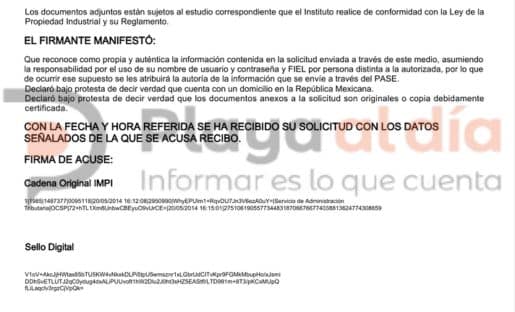Pero destaca, por supuesto, el registro de la marca donde el hoy diputado Hugo Alday Nieto se presenta como el representante legal.