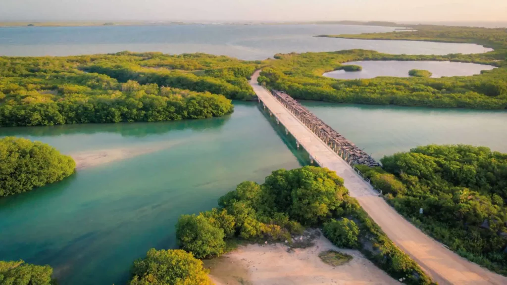 El proyecto, cabe destacar, se desarrolla al interior de la biosfera de Sian Ka’an, declarada Patrimonio de la Humanidad en 1987 por la UNESCO que, a casi 40 años del decreto de su creación, enfrenta diversos problemas en su superficie de 528 mil 148 hectáreas, que van más allá del recale masivo de sargazo, pues se ha incrementado la construcción de supuestas casas que en realidad son pequeños hoteles disfrazados, así como la pesca ilegal, y ahora el denominado proyecto Puerta al Mar, obra de infraestructura vial que lleva a cabo la Secretaría de la Defensa Nacional (Sedena) para conectar la cabecera municipal de Felipe Carrillo Puerto con la zona de Vigía Chico, a través de un camino de 55 km de largo que también atraviesa esta biosfera y que, como han señalado varios sectores de su población, no ha llevado ningún beneficio.