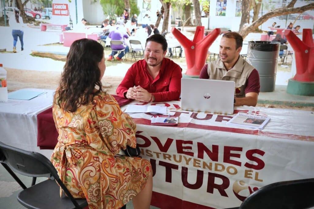 Asimismo, Farid Rentería participó en la feria de empleo “Empléate Mujer Quintana Roo” realizada en Cancún, convocada por la Secretaría del Trabajo y Previsión Social, encabezada por José Francisco Trujillo, a través de la Coordinación del Servicio Estatal de Empleo, dirigida por Tayde Rojas. Durante el evento, la oficina móvil del programa brindó información y acompañamiento a jóvenes que buscan integrarse a esta estrategia impulsada por el Gobierno de México.