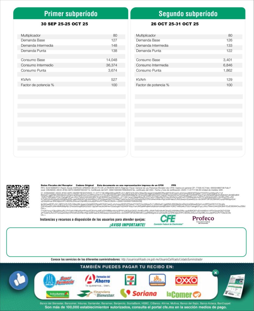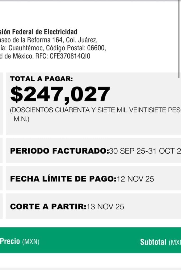 El esquema se volvió más sencillo de ejecutar debido al proceso que mantiene la Comisión Federal de Electricidad con el residencial, ya que permite que los propietarios se conecten a un transformador común y paguen un solo recibo dividido entre todos. De acuerdo con documentos en poder de esta casa editorial, en el periodo de septiembre a octubre de 2025 la administración reportó un pago por $265,476 pesos, cuando el recibo original refleja únicamente $247,027 pesos, es decir, una diferencia no justificada de $18,449 pesos. 💸