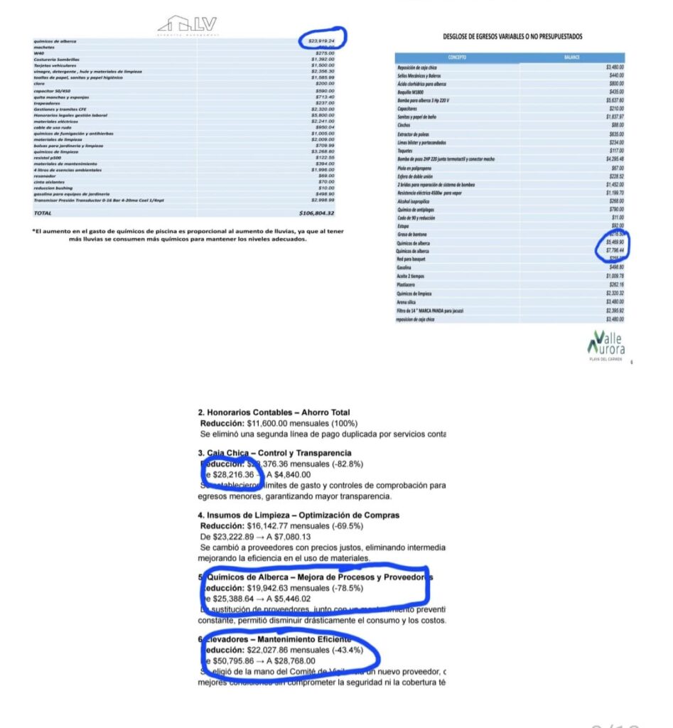 Entre los residenciales que atravesarían la misma situación se encuentran Bali, en el sur de la ciudad, y Valle Aurora, ubicado sobre la avenida 125. Fue precisamente en Valle Aurora donde surgieron las primeras evidencias de un posible desfalco a los condóminos, luego de que la administración reemplazara el servicio de vigilancia profesional por uno más económico pero altamente ineficiente. También se han documentado alteraciones en los montos de los recibos de energía eléctrica ⚡, falta de mantenimiento en áreas como albercas, canchas y jardines 🌿, así como un incremento en la nómina superior a los $200,000 pesos, afectando directamente el patrimonio de las familias.