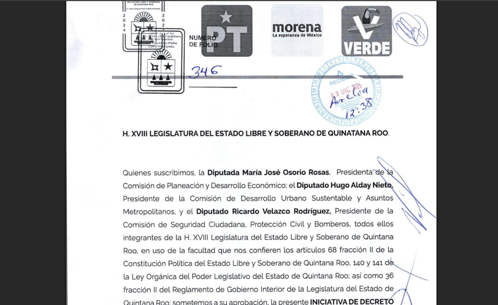 Además, el contexto político no es menor: el Congreso de Quintana Roo cuenta con mayoría vinculada a Morena, el Partido del Trabajo y el Partido Verde Ecologista de México, lo que podría facilitar una aprobación acelerada si no se abre un debate amplio y transparente.