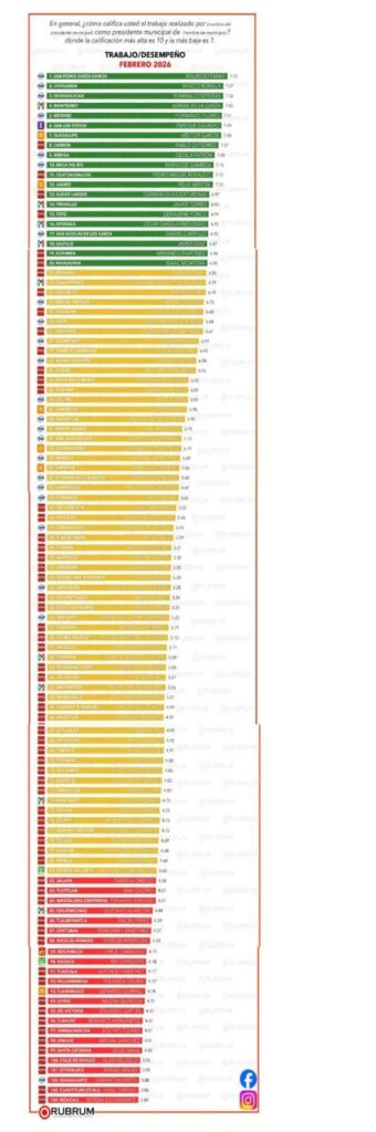 La casa encuestadora Rubrum publicó su más reciente medición sobre el desempeño de alcaldes en 104 municipios del país