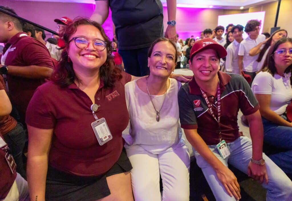 “Uno de los ingredientes que a mí me ha funcionado, no solo como presidenta municipal, sino en la vida, es tener siempre una buena actitud”, expresó ante los jóvenes que llenaron uno de los salones del recinto.