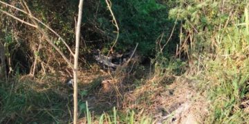 De inmediato, elementos policiales acudieron al llamado, quienes al llegar se percataron que se trataba de un vehículo gris que se encontraba dentro de la maleza, totalmente destrozado.