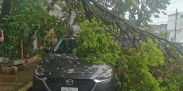 Según lo informado por los testigos del lugar, todo ocurrió cuando la rama de un árbol se desprendió y cayó sobre un vehículo que estaba estacionado en la calle Sicilia, entre las avenidas Venustiano Carranza y San Salvador, en la ciudad Chetumal.