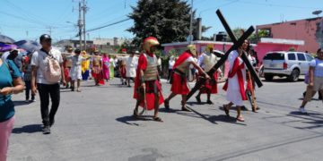 Cientos de fieles católicos salieron a las calles de Chetumal para participar en representaciones del Vía Crucis con motivo del Viernes Santo.