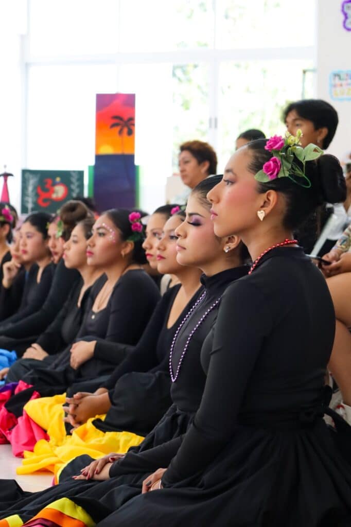 El programa artístico también incluyó presentaciones de danza con las piezas “Las Chiapanecas” y “Rolling in the Deep”, de la cantante británica Adele, interpretadas por alumnas de la UQROO de las carreras de Ingeniería Empresarial, Hotelería, Derecho y Administración, quienes fusionaron música y movimiento en el escenario del aula magna.