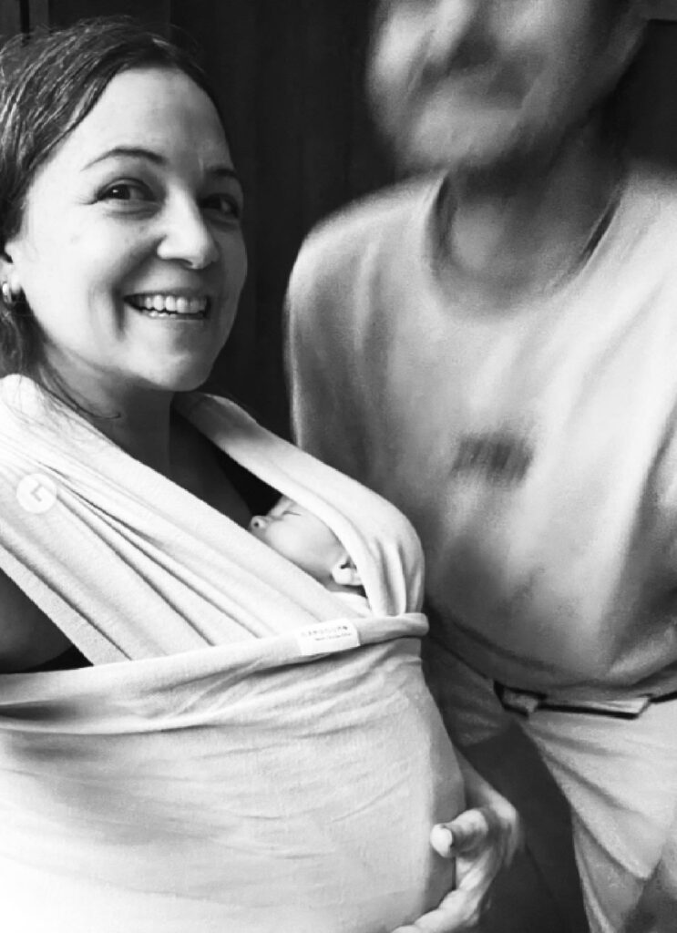 Una serie de fotografías compartidas en redes sociales, muestra íntimos momentos acompañada de su familia en los últimos días de su embarazo y luego tras el parto, incluyendo la primera junto a su bebé.