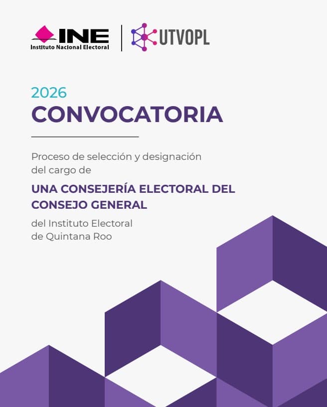 El Instituto Nacional Electoral (INE) emitió la convocatoria para participar en el “Proceso de Selección y Designación del cargo de una Consejería Electoral del Consejo General del Instituto Electoral de Quintana Roo”