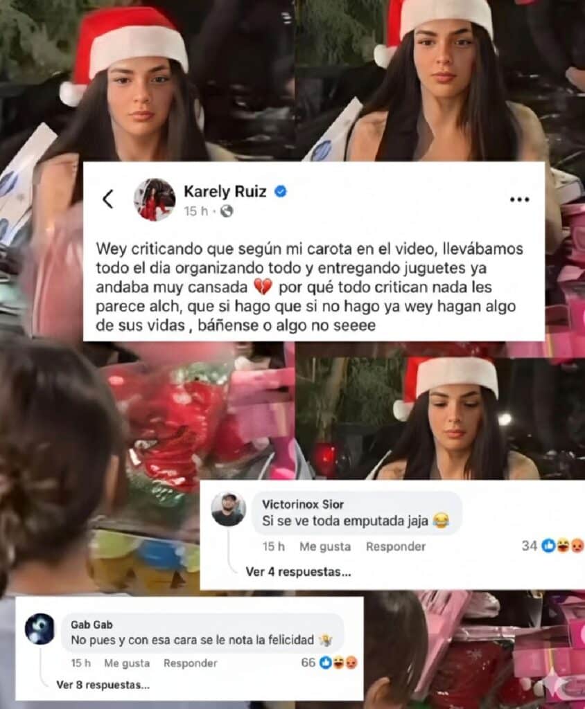 Tras las críticas, Karely Ruiz decidió responder públicamente mediante un mensaje en sus plataformas digitales. En su comunicado, la influencer explicó que cada año realiza este tipo de acciones sin esperar nada a cambio y que su intención siempre es hacer felices a los niños, independientemente de lo que se perciba en cámara.