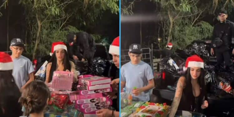 🎅 La influencer y su esposo, Jhon Echeverry, salieron a las calles para llevar un poco de alegría a los menores durante la temporada navideña, repartiendo muñecas, carritos, pelotas y figuras de… pic.twitter.com/c7AWmjdaiP