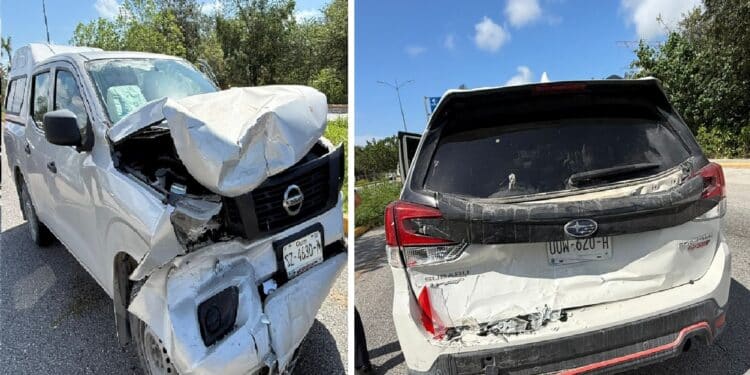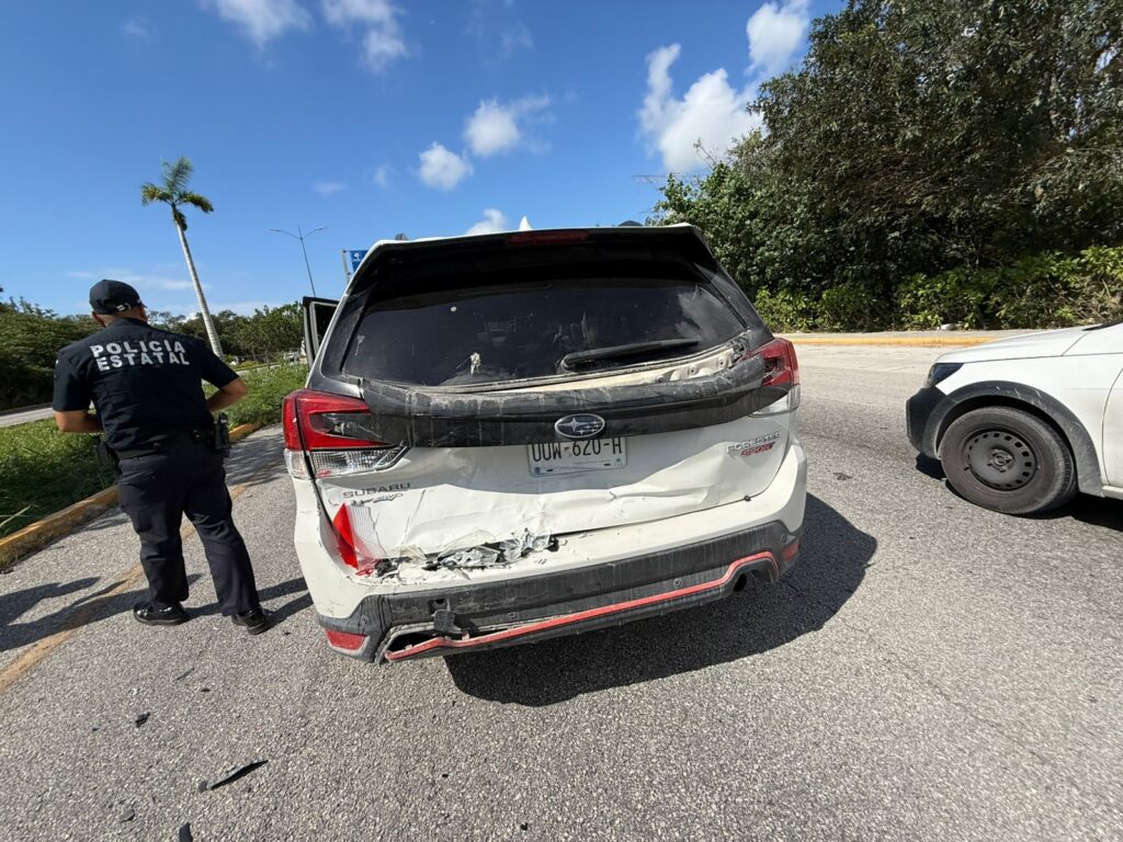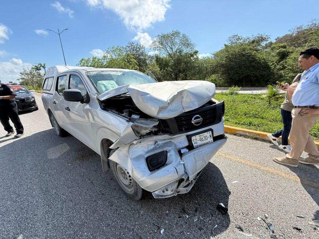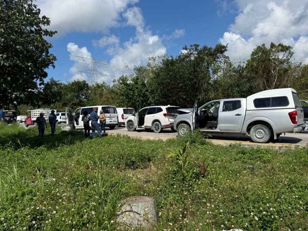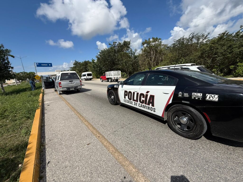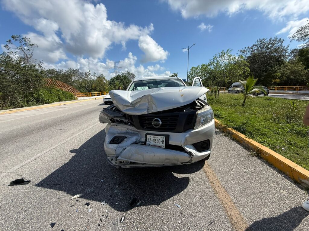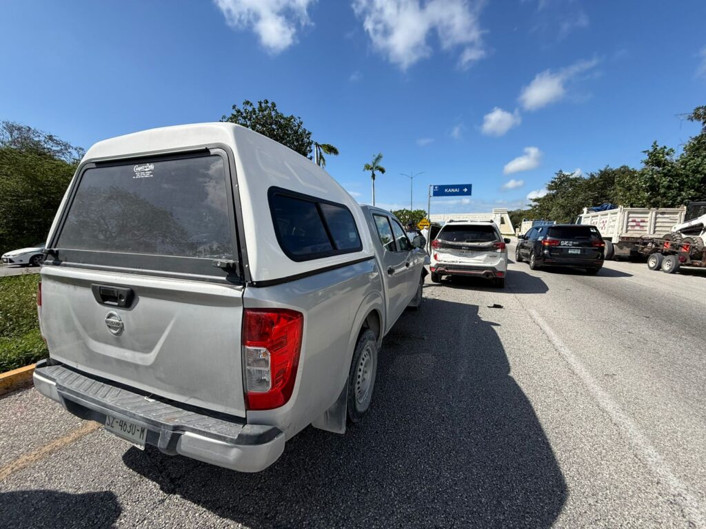 Una carambola de cuatro vehículos se registró la mañana de este viernes sobre la Carretera Federal 307, en el tramo Cancún-Playa del Carmen a escasos metros del filtro de seguridad policial, este incidente dejó como saldo cuantiosos daños materiales y una fuerte movilización de los cuerpos de emergencias.