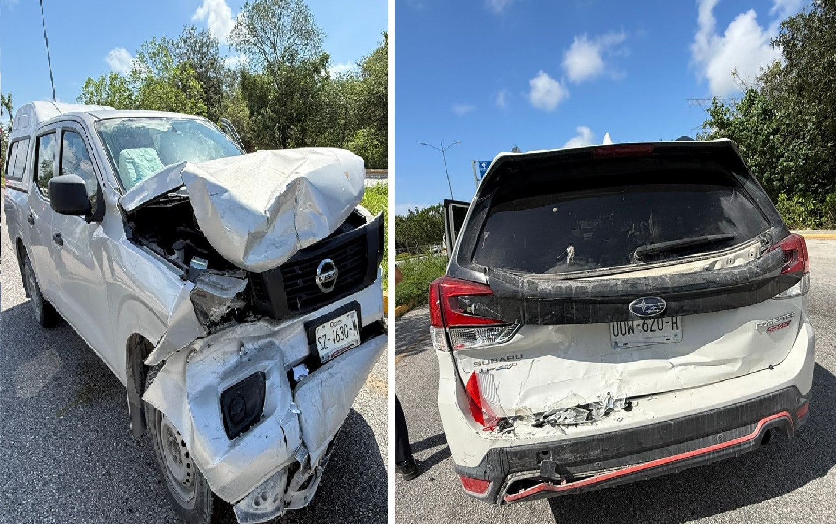 Una carambola de cuatro vehículos se registró la mañana de este viernes sobre la Carretera Federal 307, en el tramo Cancún-Playa del Carmen a escasos metros del filtro de seguridad policial, este incidente dejó como saldo cuantiosos daños materiales y una fuerte movilización de los cuerpos de emergencias.