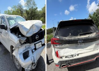 Aparatoso accidente vehicular deja cuantiosos daños materiales en tramo Cancún-Playa del Carmen