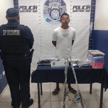 Por lo anterior, policías municipales implementaron un operativo de búsqueda, logrando de esta manera asegurar a Francisco “N” de 22 años, oriundo de Tabasco, cuando se encontraba sobre la avenida Playa del Carmen, cargando varios artículos, que fueron identificados por las víctimas como de su propiedad, entre los cuales se encontraban 2 cañas de pescar, un carrete, 2 caja con artículos de pesca, 7 pasaportes, 2 identificaciones, 3 carteras, una mochila, 2 laptop y 2 tablets, así como 2 envoltorios con marihuana, uno con cristal y 57 con piedra.