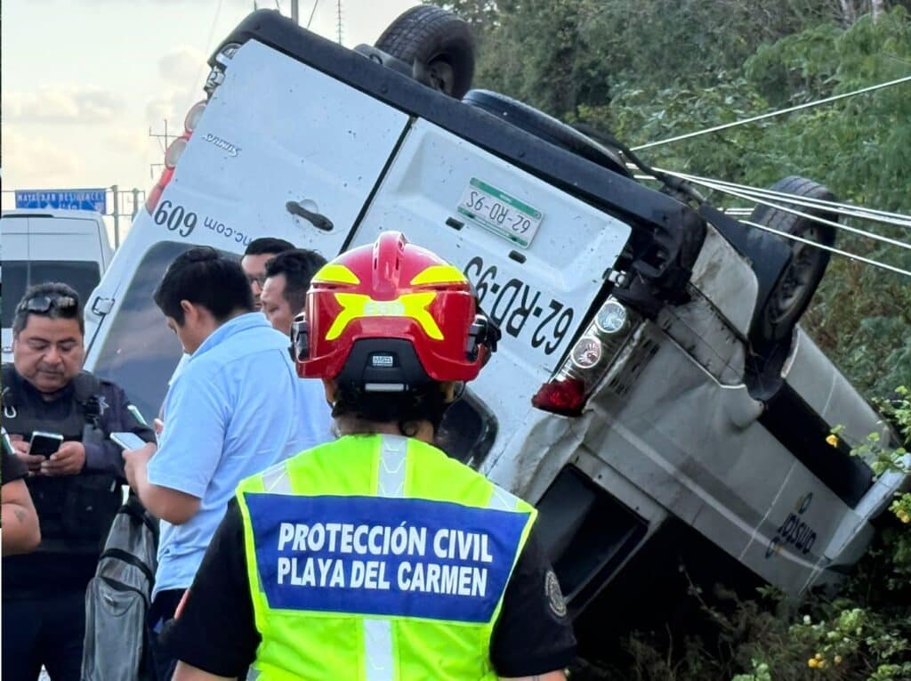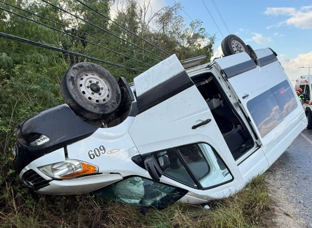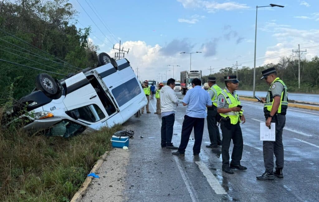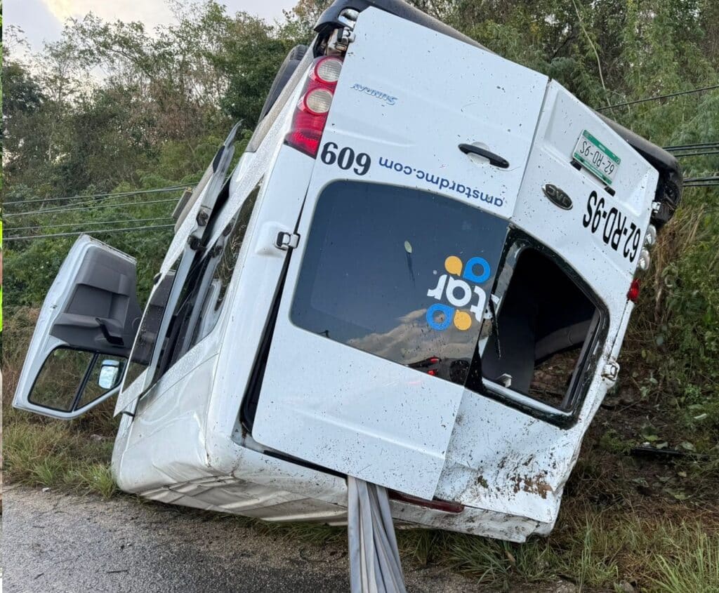 Una mañana complicada y de tensión se vivió ayer sobre la carretera federal 307 en el tramo Playa del Carmen – Tulum cuando una camioneta de transporte turístico terminó volcada a un costado de la carpeta asfáltica a la altura del kilómetro 285, dejando como resultado a un turista lesionado.