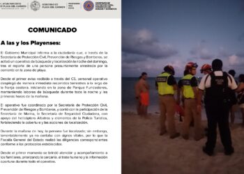 Gobierno Municipal confirma que joven arrastrado por el mar fue localizado sin vida en Playa del Carmen