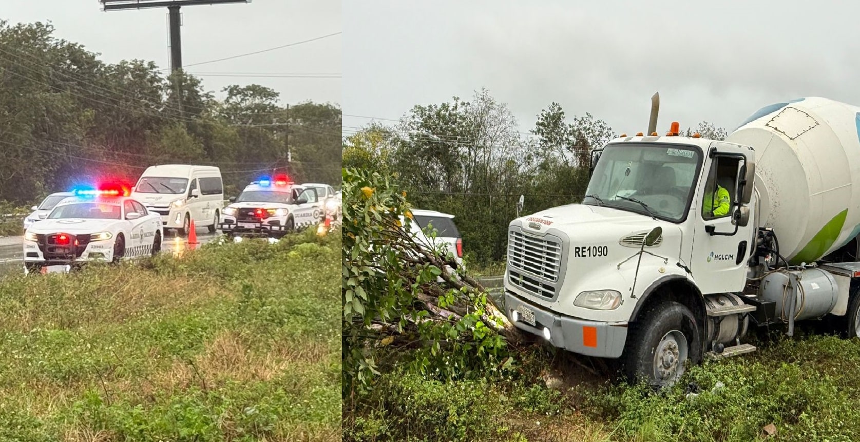 Tras el impacto, el conductor resultó ileso y la pesada unidad sufrió averías en la dirección frontal y quedó atascada en el lodo formado por las lluvias recientes. El carril de alta velocidad fue cerrado temporalmente, lo que generó congestión vehicular en el sentido hacia Cancún.