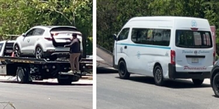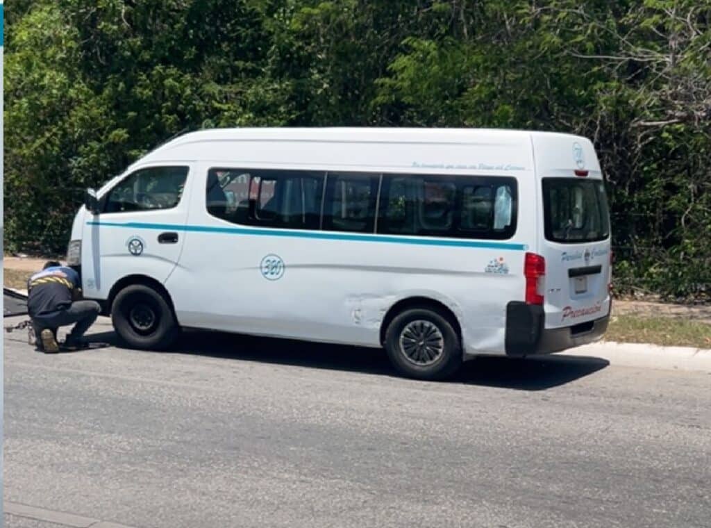 El incidente se registró a la altura de la glorieta de Paseos del Mayab. Según reportes oficiales, el conductor de la combi marcada con el número económico 320 realizó una maniobra imprudente que terminó cerrándole el paso a una camioneta conducida por una mujer, impactándola de costado.