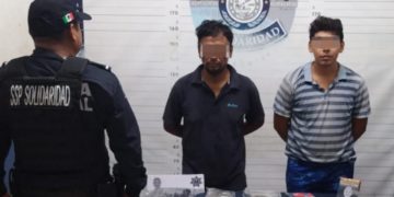 Posteriormente en un segundo hecho, los elementos de la Policía Municipal mientras circulaban cerca del cruce de las avenida De las Naciones con Chemuyil, detuvieron a Eduardo “N” de 23 años, originario de Yucatán y a César “N” de 50 años, procedente de Veracruz, en posesión de 8 envoltorios con marihuana, 6 con la droga conocida como piedra, 3 bolsitas con una sustancia similar a droga llamada cristal y 4 bolsitas con polvo de cocaína.