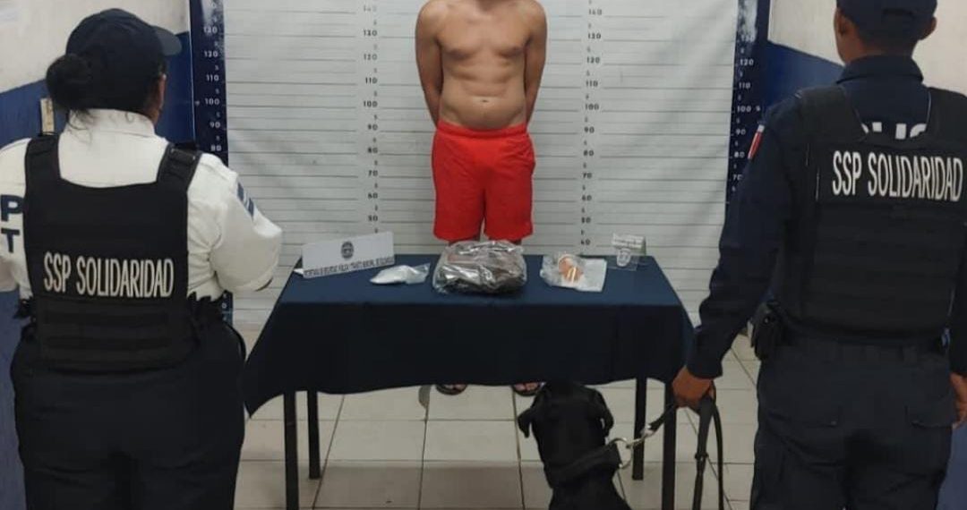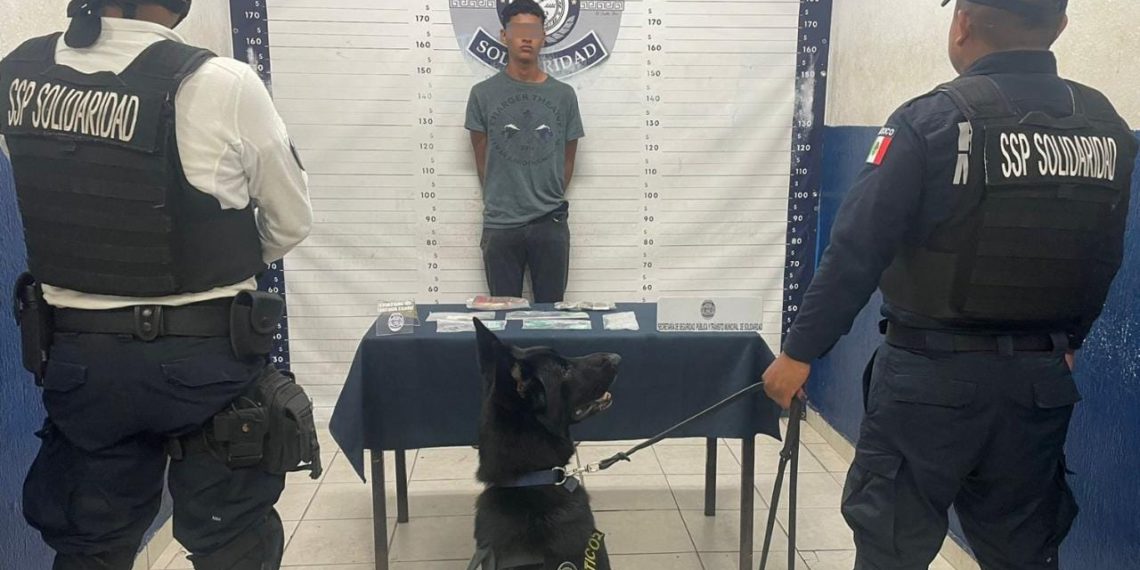 En el primero de estos hechos policías municipales detuvieron a un sujeto que fue identificado como Anthony “N” de 43 años de origen extranjero y procedente de California, fa quien le encontraron en posesión de 5 cigarros de marihuana y un recipiente con pastillas, esto se logró luego que el canino de la Unidad K9 le realizó un marcaje de alerta al pasar junto a él en la zona de playas con calle Tercera Sur, durante un operativo que se realizaba en conjunto con la Policía Turística.