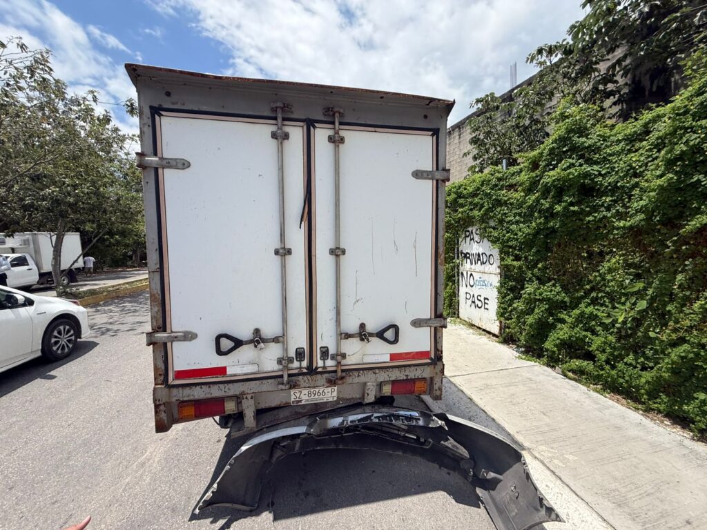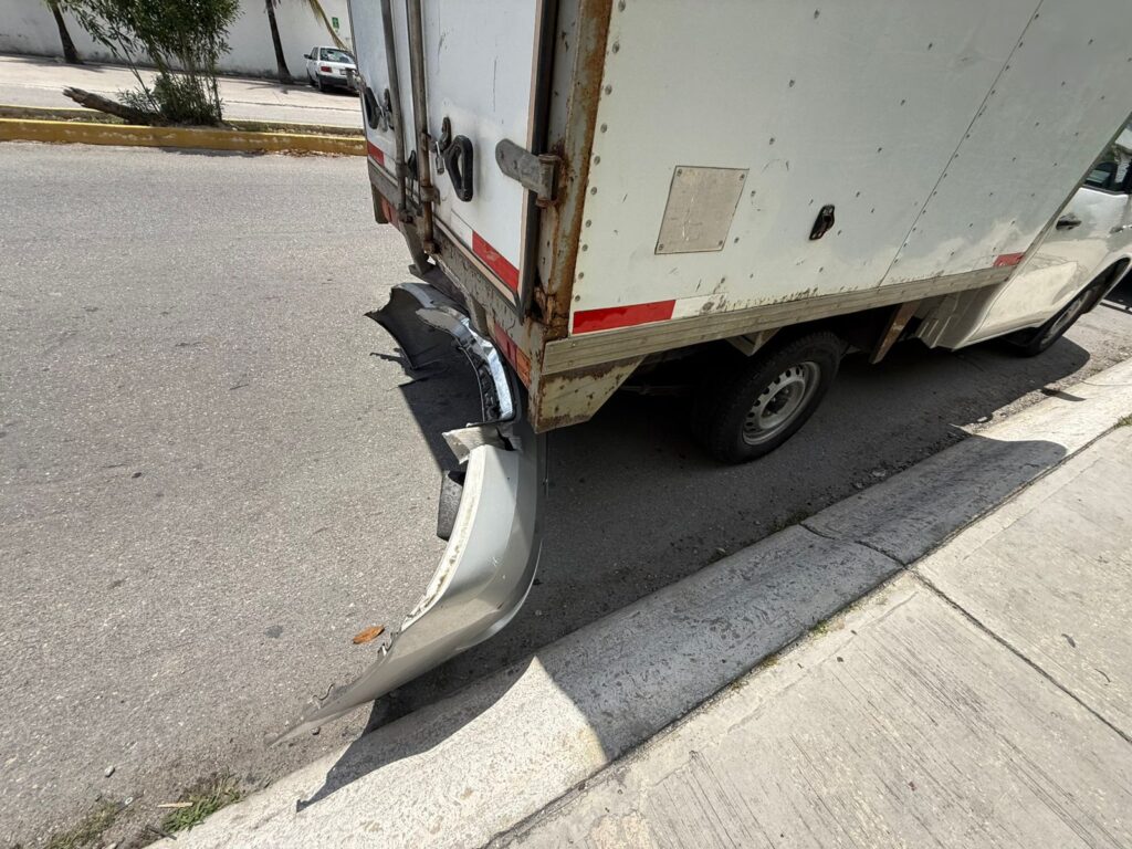 De acuerdo con los primeros reportes, el conductor de un vehículo Chevrolet Malibu color gris impactó por alcance a una camioneta Nissan blanca con caja cerrada, que transitaba sobre la misma vía. La fuerza del choque fue considerable, al grado de que la fascia delantera del automóvil quedó desprendida y parcialmente incrustada en la parte trasera de la unidad de carga, evidenciando la intensidad del impacto.