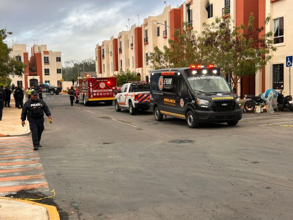 Durante la mañana de este viernes se registró una fuerte movilización de los cuerpos de emergencia en los edificios de departamentos ubicados en el fraccionamiento El Edén en Playa del Carmen, tras reportarse un incendio al interior de uno de los departamentos.