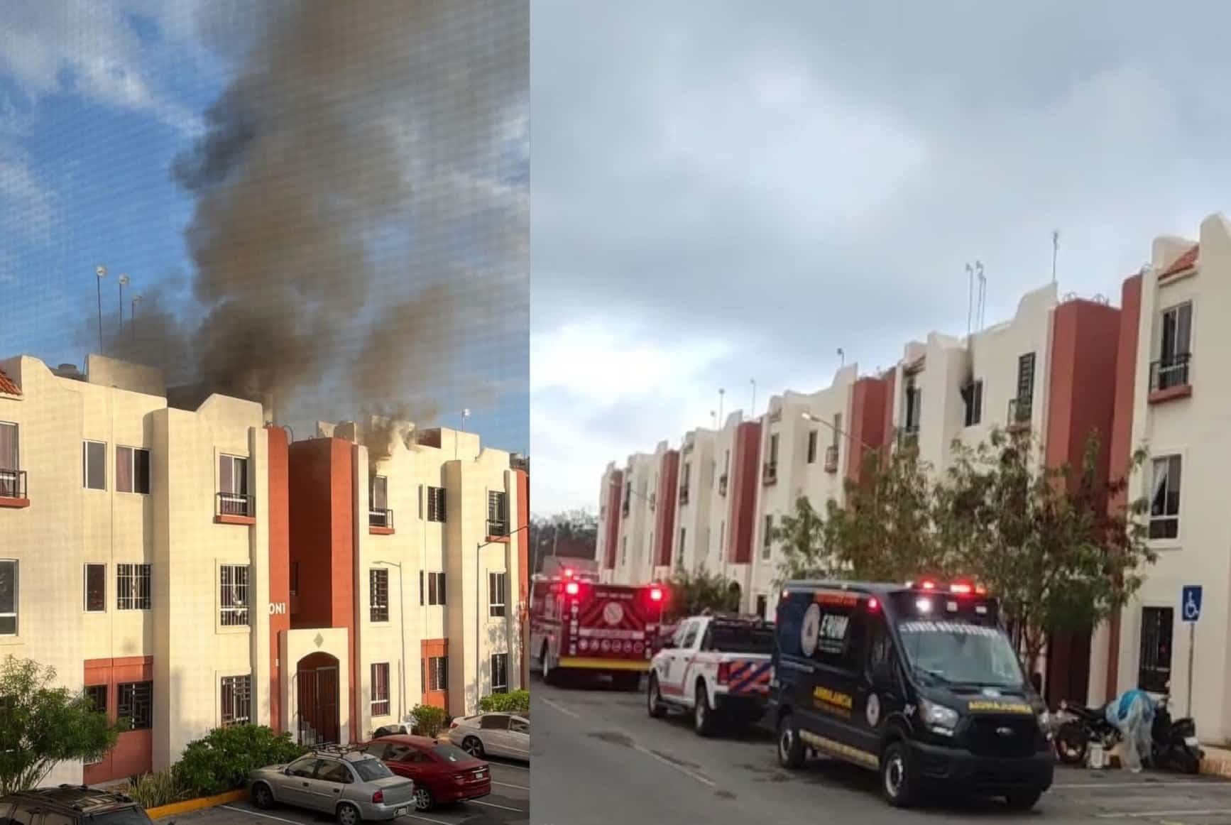 Durante la mañana de este viernes se registró una fuerte movilización de los cuerpos de emergencia en los edificios de departamentos ubicados en el fraccionamiento El Edén en Playa del Carmen, tras reportarse un incendio al interior de uno de los departamentos.
