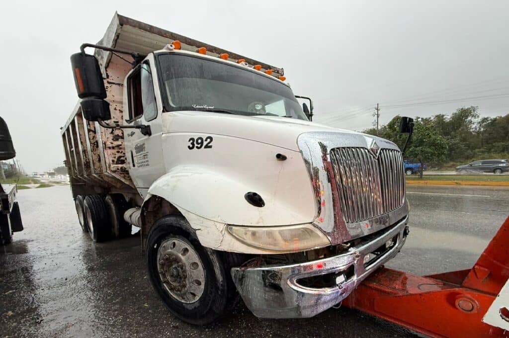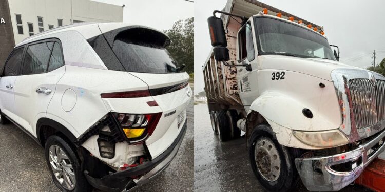 El reporte señala que este incidente ocurrió cuando el operador de un tractocamión tipo volquete circulaba sobre la vía. la cual se encontraba mojada por la lluvia, sin embargo al no guardar la distancia de seguridad y superar los límites de velocidad permitidos, el chofer no logró frenar a tiempo ante la presencia de una camioneta particular Hyundai Creta.