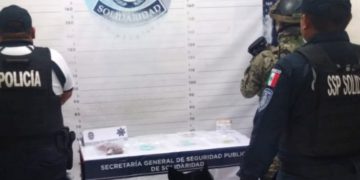 Más tarde en la zona turística de la ciudad, agentes de la policía realizaban un recorrido sobre la Quinta Avenida entre las calles 38 y 40 lograron asegurar a un sujeto cuando sacaba entre sus pertenencias envoltorios con marihuana de una bolsa que llevaba Santos “N” de 35 años, originario de Tabasco, además se le encontró 4 bolsas con marihuana y 9 bolsitas con cocaína.