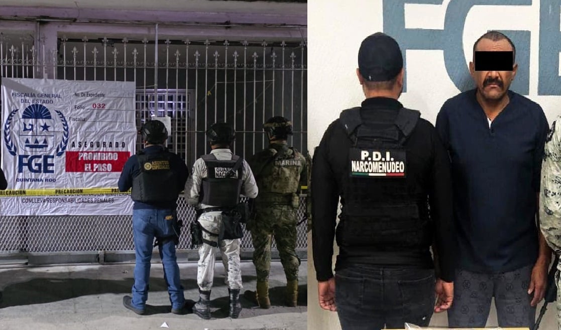 Los agentes de Investigación adscritos a la FGE en cumplimiento a mandatos judiciales en coordinación con la Guardia Nacional, Secretaría de la Defensa Nacional y Secretaría de Marina llevaron a cabo cinco órdenes de cateo en los municipios de Playa del Carmen y Othón P. Blanco, logrando detener a un hombre por su posible participación en delitos derivados del narcomenudeo, además se aseguraron presuntas sustancias ilícitas.