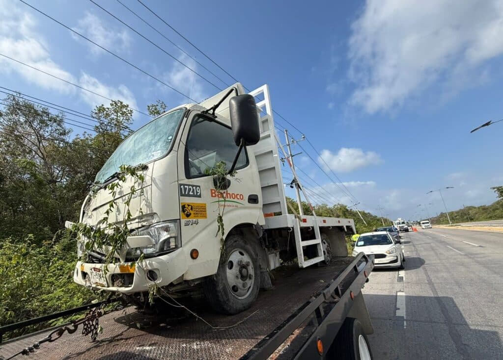 Este hecho, fue reportado por otros conductores que transitaban por la zona a la altura de Punta Venado, cuando el conductor de un camión de carga de la marca Hino, propiedad de la empresa Bachoco, circulaba con dirección a Playa del Carmen, presuntamente se dormita al volante y pierde el control de la pesada unidad.