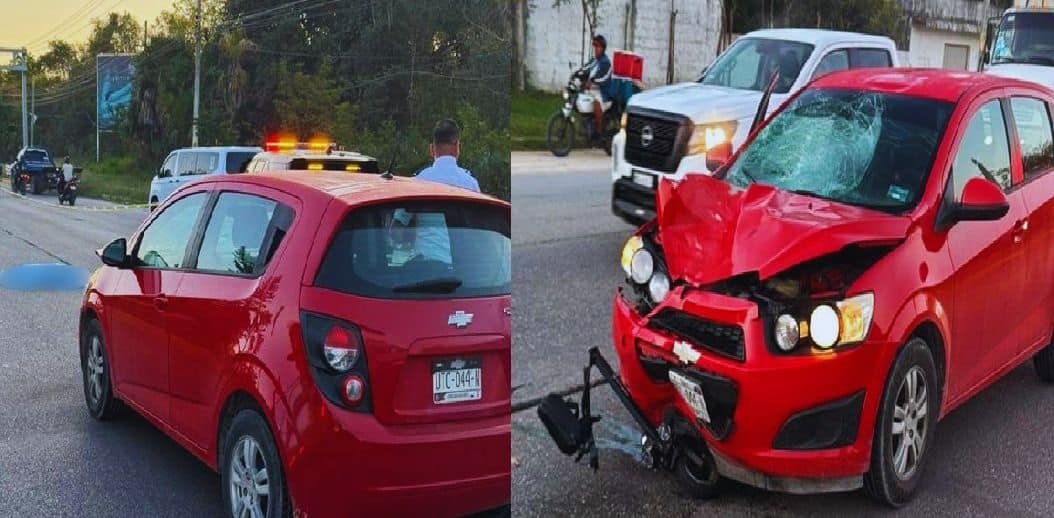 Hasta el bulevar entre la avenida Chemuyil y el acceso al complejo hotelero Corazol, acudieron los cuerpos de emergencia alrededor de las 07:20 horas de esta mañana para atender a persona que se encontraba tirada sobre la carpeta asfáltica, esto debido a que circulaba a bordo de un scooter y al momento de salir al camellón central invadió el carril de circulación de un automóvil de color rojo, tipo Sonic. El conductor del automóvil, que iba con preferencia de paso, intentó frenar pero no pudo evitar embestir a la mujer, quien salió proyectada varios metros, cayendo en el pavimento donde al parecer falleció de manera instantánea.
