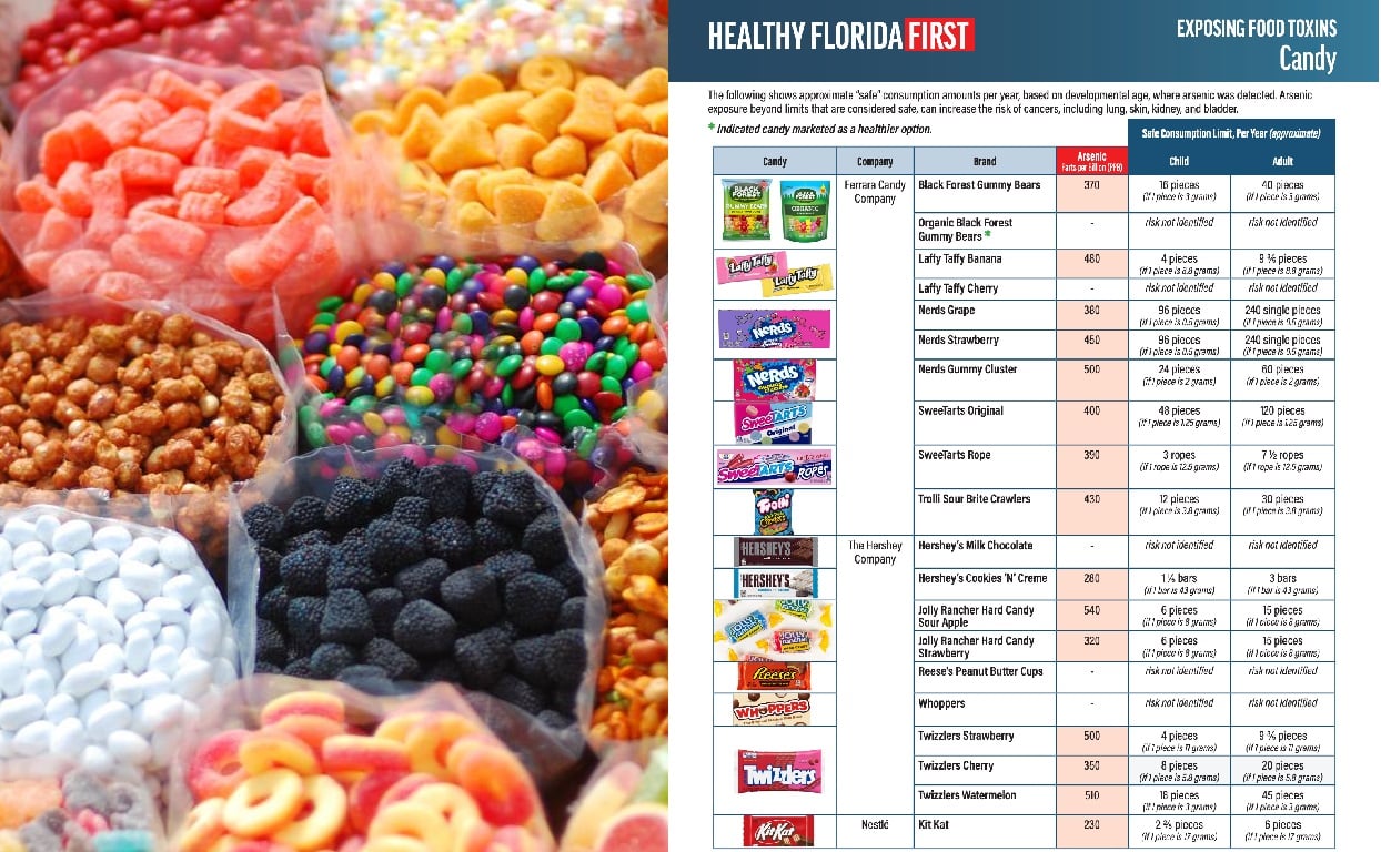 Las autoridades sanitarias de Florida identificaron arsénico en 28 productos de dulces tras un estudio que examinó la presencia de metales pesados en alimentos vendidos en Estados Unidos. El hallazgo fue dado a conocer a finales de enero por el gobernador Ron DeSantis, luego de que el Departamento de Salud del estado concluyera el análisis de 46 comestibles elaborados por diez compañías.