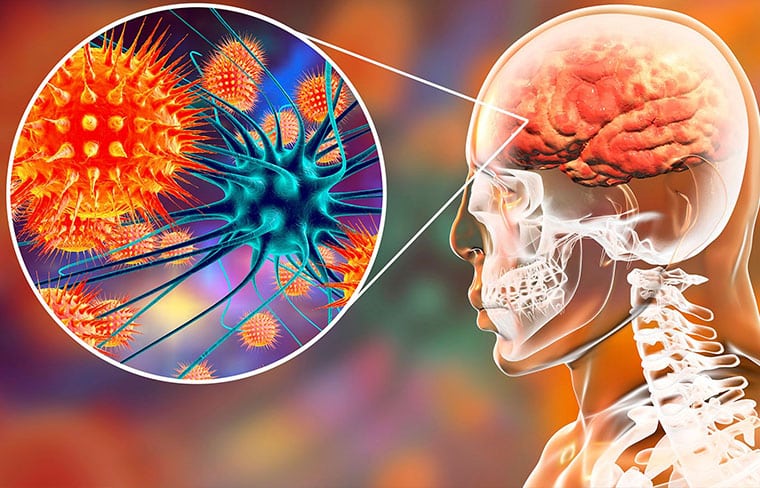 En casos graves, el virus puede atacar partes del cerebro que controlan funciones vitales básicas, como el movimiento ocular, la frecuencia cardíaca y la presión arterial, causando daños permanentes. Quienes sobreviven a menudo experimentan fatiga y cambios en el funcionamiento del sistema nervioso. Estos efectos suelen persistir durante años.