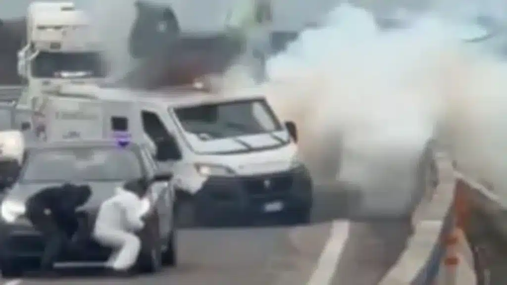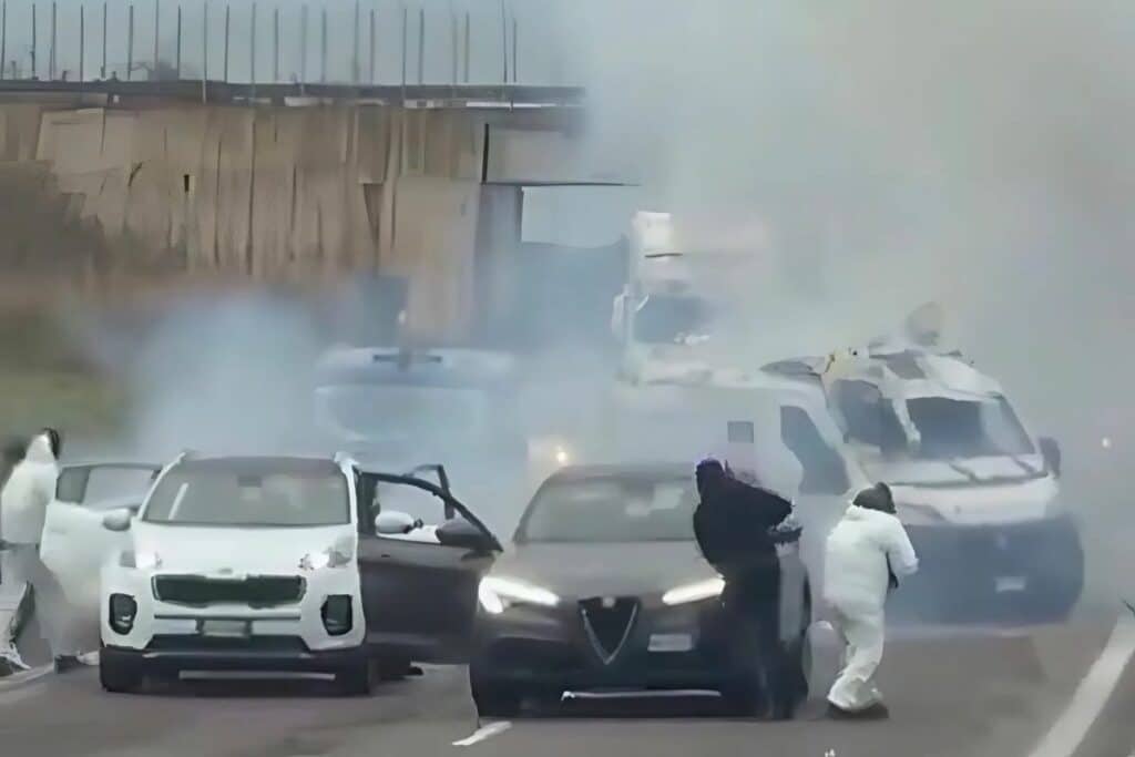 Asalto de película en el sur de Italia, comando armado ataca vehículos blindados en carretera