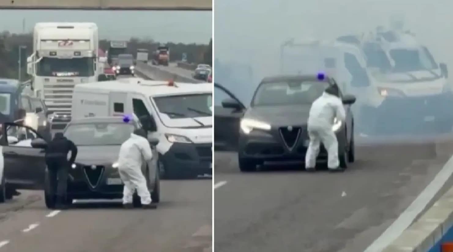 Durante esta espectacular operación los delincuentes cortaron la carretera con coches y una furgoneta que posteriormente incendiaron, antes de darse a la fuga tras protagonizar un tiroteo con los Carabineros, la Policía Estatal del país transalpino.