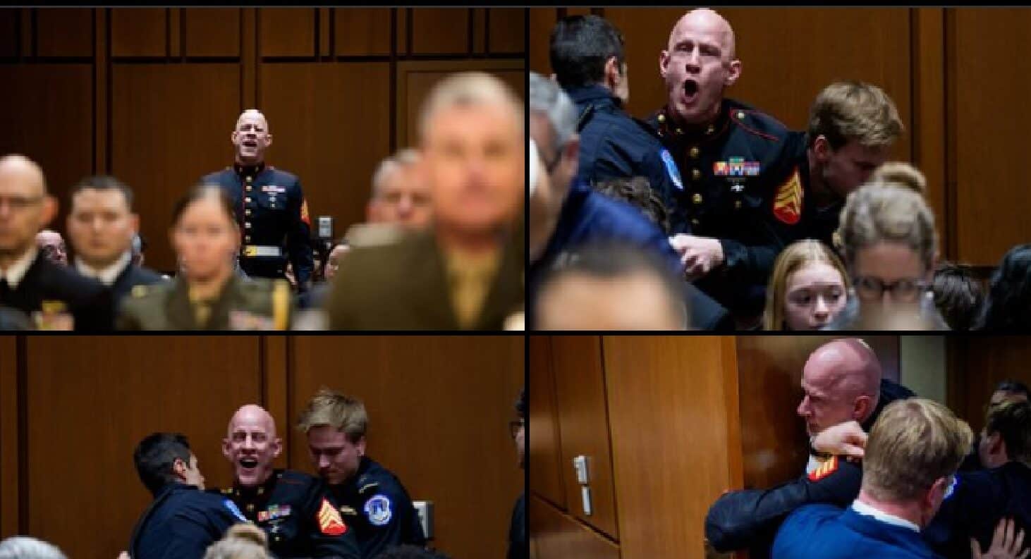 Durante una audiencia del Subcomité de Servicios Armados del Senado celebrada durante el miércoles 4 de marzo, el desarrollo de la sesión fue interrumpido por una manifestación individual que derivó en un altercado físico y el arresto de un ciudadano. El protagonista del incidente es Brian McGinnis, un hombre de 44 años vestido con el uniforme de gala del Cuerpo de Marines de los Estados Unidos que manifestó su rechazo a la participación militar estadounidense en conflictos de Medio Oriente.