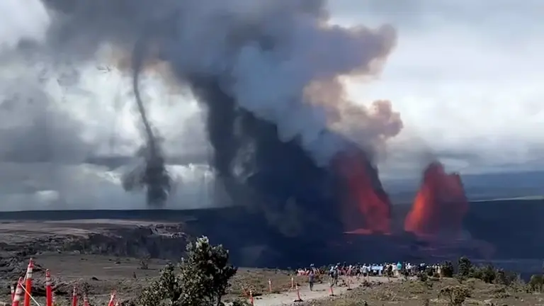 Un video publicado por el Servicio Geológico de Estados Unidos (USGS) mostró un torbellino de aire enviando cenizas al cielo junto a una fuente de lava en el volcán Kilauea de Hawái. La ceniza pareció formar un vórtice, similar a un tornado. Se arremolinó cerca de la fuente de lava, creando una combinación inusual.