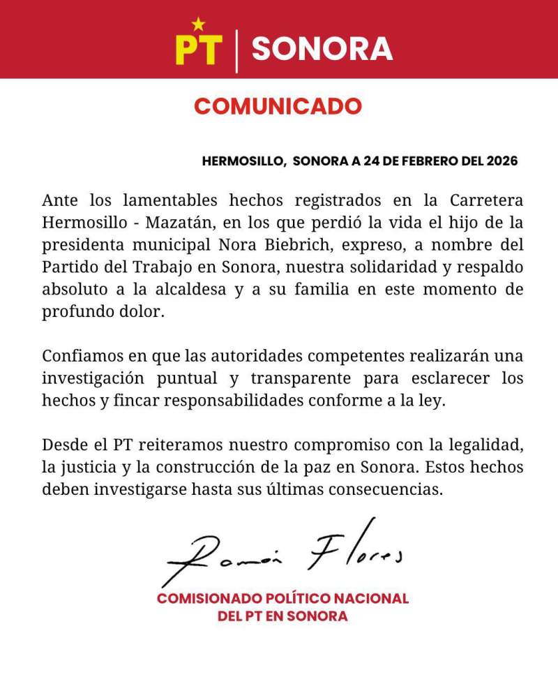 La  alcaldesa, que llegó a su puesto en 2024 por el Partido del Trabajo (PT), se encuentra en recuperación, de acuerdo con la autoridad, mientras que se realizan las diligencias correspondientes para la disposición del cuerpo de su hijo.