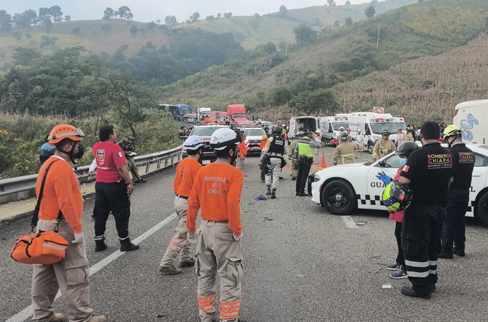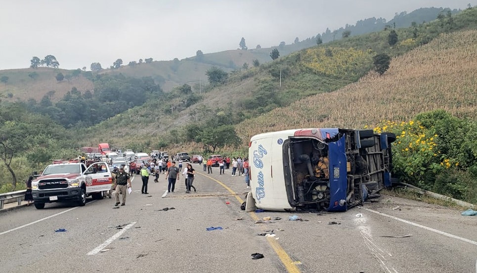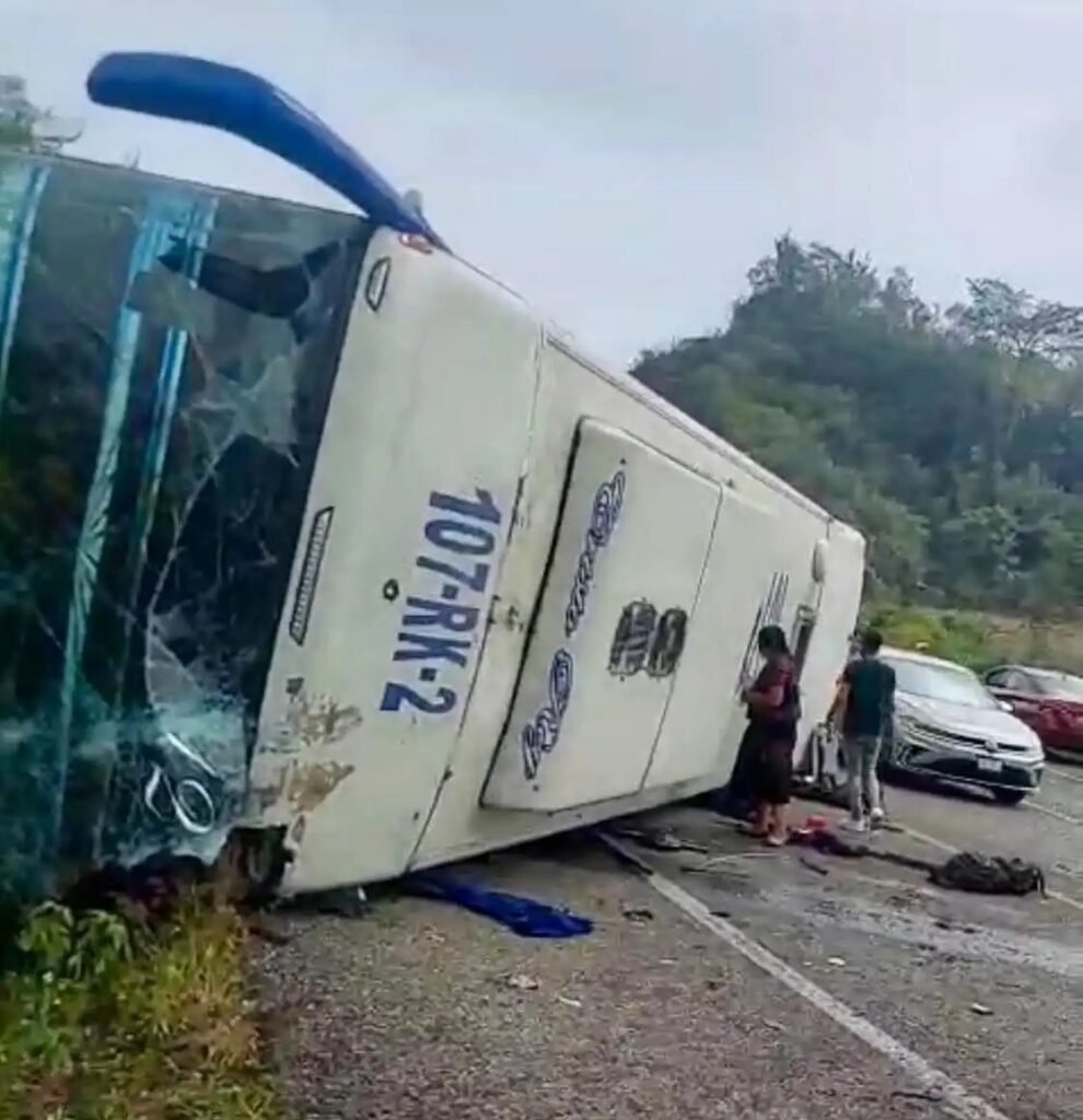 Al menos dos muertos y 22 heridos fue el saldo que dejó la volcadura de un autobús que trasladaba a un grupo de personas indígenas mayas tzotzil y tzeltal, en la autopista de San Cristóbal de las Casas, en Chiapas, informó Protección Civil del estado.