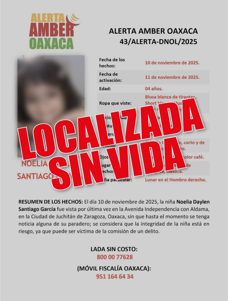 Esta acción civil ocurre luego de que se diera a conocer la desaparición de la menor y fuera localizada sin vida la tarde del 11 de noviembre en un domicilio de la Colonia La Planta, en Juchitán de Zaragoza, Oaxaca, tras un ataque armado en el que perdió la vida su madre y dos personas más el día anterior.