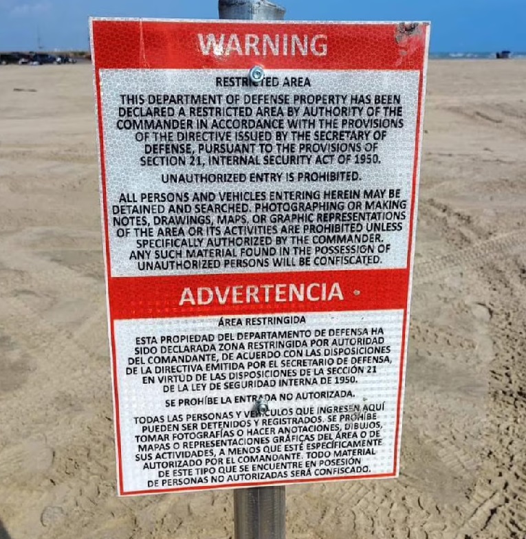 Los señalamientos, algunos de los cuales fueron colocados ilegalmente dentro del mar y en la desembocadura del río, prohibía el acceso basándose en una directiva del secretario de Defensa de EU y en la Ley de Seguridad Interna de 1950.