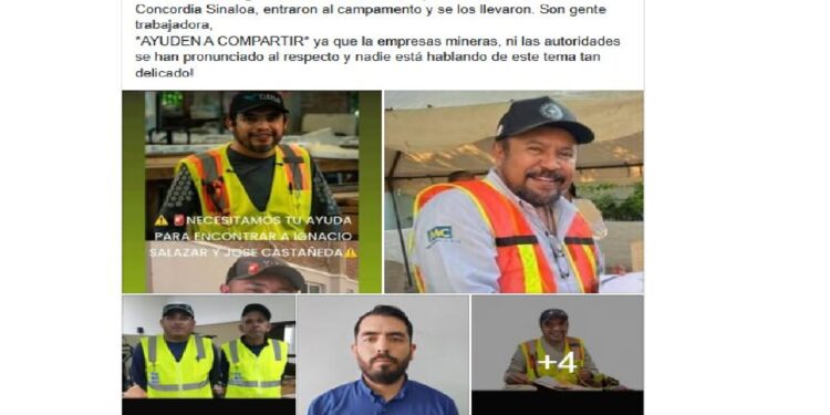 Los diez trabajadores están vinculados a una operación minera en el sur de Sinaloa y de acuerdo a sus familiares y asociaciones profesionales del sector, un grupo armado habría secuestrado a los empleados la mañana del 23 de enero en el municipio de Concordia.