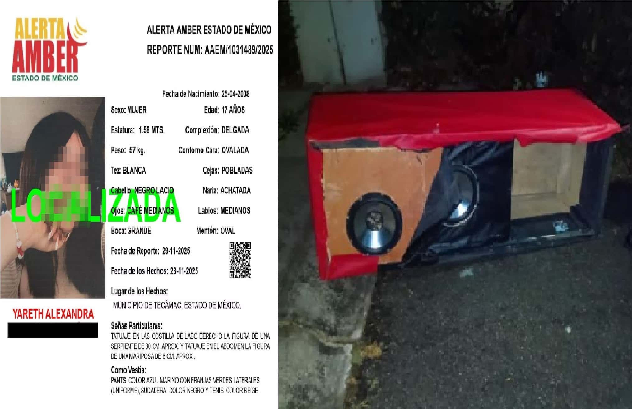 La joven fue reportada como desaparecida el pasado 28 de noviembre tras asistir al Conalep Tecámac, donde asiste a la escuela, y un día después en ese municipio se generó un boletín de búsqueda con Alerta Ámber, y posteriormente personal de la Célula de Búsqueda activó el protocolo correspondiente, mantuvo contacto permanente con los familiares y coordinación con la fiscalía mexiquense para dar con el paradero de la menor.