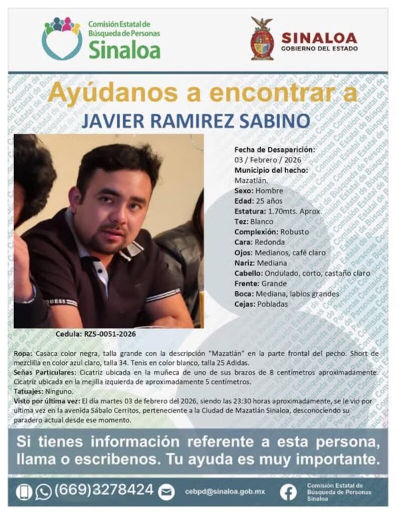 Asimismo, según la información, tres de los turistas desaparecidos son hermanos: Javier, Gregorio y Omar, Óscar es un familiar cercano. Este hecho ha generado alta preocupación en el puerto sinaloense, que está próximo a realizar el Carnaval Internacional de Mazatlán 2026.
