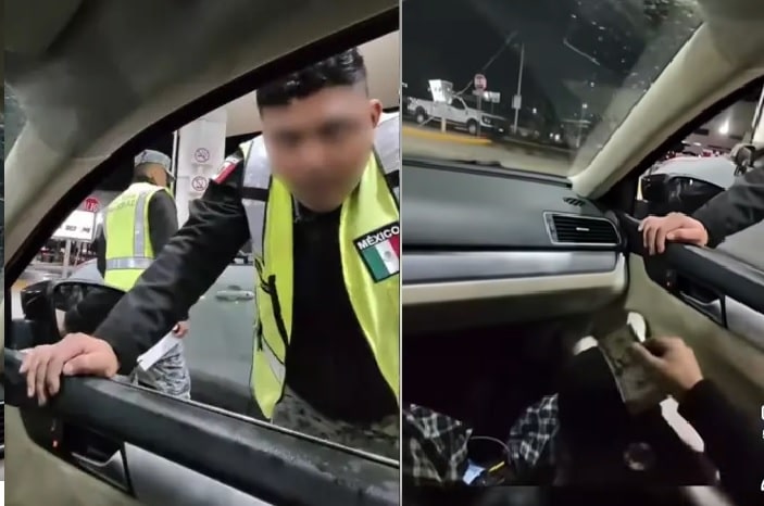 La grabación fue difundida en X por la cuenta “Prófugos del Ácido Fólico” y en las imágenes se puede observar como el oficial mexicano se acerca al automovilista y cuestiona si los productos ya habían sido declarados; al admitir que no, el oficial mencionó que era un requisito, pero sugirió “hacerles el paro” si le daban dinero, luego de un breve intercambio sobre la cantidad, el oficial aceptó los cinco dólares e incluso pidiendo que el dinero se entregara “por la puerta de atrás” para no ser visto y permitió el cruce sin declarar los artículos.